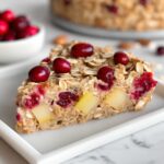 This Apple Cranberry Baked Oatmeal is a warm, comforting, and nutritious breakfast perfect for chilly mornings. Combining the natural sweetness of apples and tart cranberries with the heartiness of rolled oats, it is lightly spiced with cinnamon and ginger for a cozy flavor. Made dairy-free with almond milk and naturally sweetened with pure maple syrup, this baked oatmeal is easy to prepare and great for meal prep.
