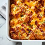 A savory and comforting Bacon, Egg, and Cheese Croissant Bake, perfect for a hearty breakfast or brunch. This dish layers crispy bacon, fluffy eggs, melty cheddar cheeses, and buttery croissants, baked together to create a delicious casserole that can be made ahead and baked fresh when ready.