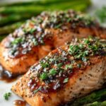 This Balsamic Glazed Salmon with Asparagus is a delicious and healthy main course that features tender, flaky salmon fillets coated in a tangy balsamic glaze, paired perfectly with roasted asparagus. Easy to prepare and quick to cook, it’s a flavorful and nutritious meal ideal for a weeknight dinner or special occasion.