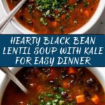 A hearty and nutritious Black Bean and Lentil Soup packed with vegetables, warming spices, and leafy kale. This comforting soup takes about 40 minutes to prepare and is perfect for a wholesome, plant-based meal that fills you up with fiber and protein.