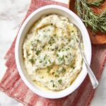 Creamy and flavorful Blue Cheese Mashed Potatoes made with tender russet potatoes, melted garlic rosemary butter, and savory blue cheese crumbles, baked to perfection for a deliciously rich side dish.
