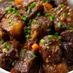 This classic Braised Oxtails recipe delivers tender, flavorful meat cooked slowly in a rich broth of beef stock, red wine, and aromatic vegetables. Perfect for a comforting dinner, the dish features oxtails braised until meltingly soft with a savory sauce enhanced by garlic, tomato paste, and fresh herbs.