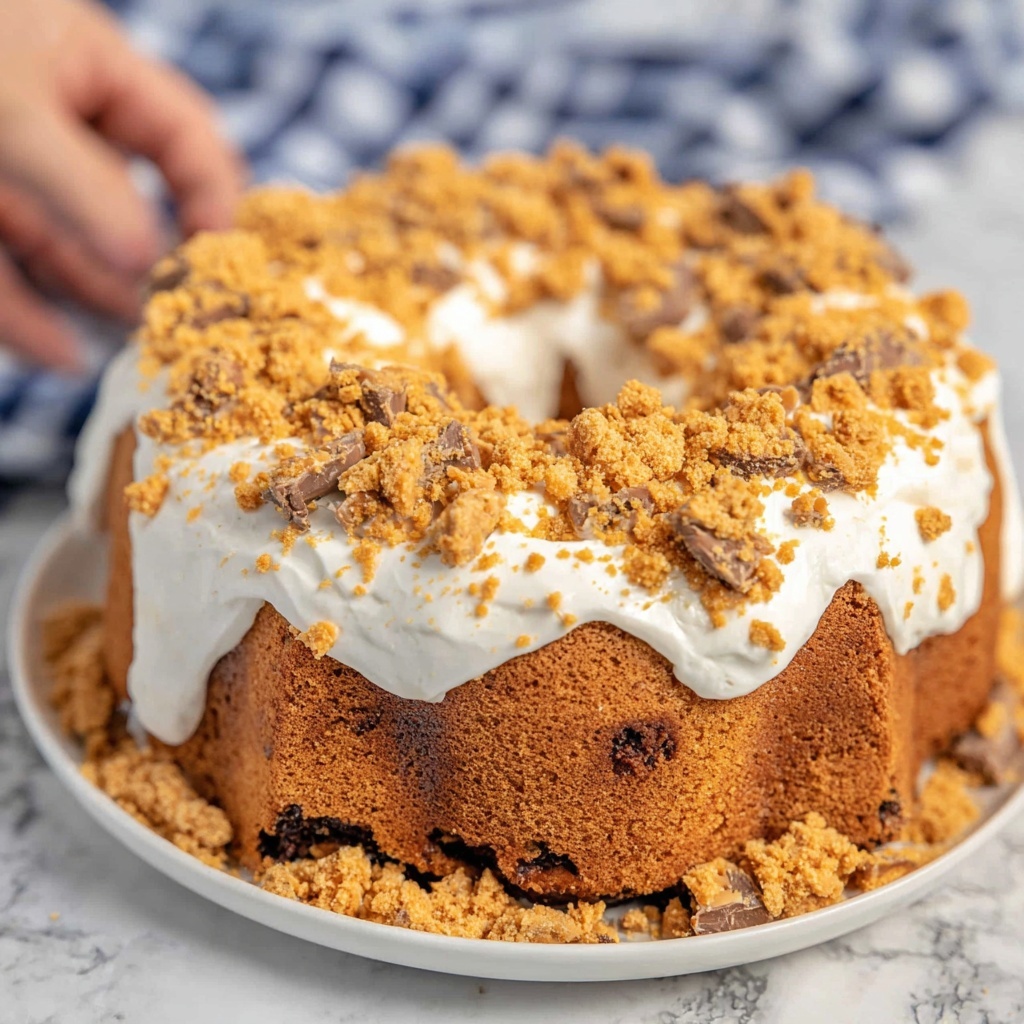This Butterfinger Pound Cake is a decadent and flavorful dessert combining a moist yellow cake base with crushed Butterfinger candy bars for a delightful crunch. Topped with a creamy homemade buttercream frosting and additional Butterfinger pieces, this Bundt cake is perfect for special occasions or anytime you crave a sweet, indulgent treat.