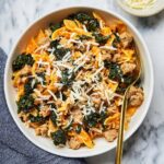 This hearty Butternut Squash Sausage Pasta combines tender in-season butternut squash with flavorful ground turkey or chicken sausage, kale, and creamy egg noodles for a comforting, well-balanced meal perfect for weeknight dinners.
