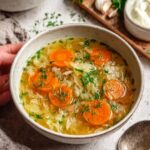 To reheat, thaw frozen soup overnight in the refrigerator or gently warm refrigerated leftovers on the stove over medium heat. Stir occasionally until heated through; you might need to add a splash of broth or water to loosen it if it’s too thick after freezing.