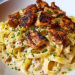 This Cajun Chicken Fettuccine Alfredo is a bold, creamy, and comforting pasta dish with a spicy twist. Tender, blackened Cajun-seasoned chicken is served over silky fettuccine noodles coated in a rich, homemade Alfredo sauce. It’s the perfect combination of heat and creaminess, making it a satisfying dinner that feels like a restaurant-quality meal at home.