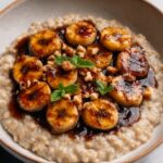 - Assemble the dish: Once the porridge is ready, ladle it into serving bowls. Top each bowl with the caramelized banana slices and your choice of additional toppings such as chopped nuts, a drizzle of honey or maple syrup, a spoonful of yogurt or splash of milk, and a sprinkle of granola for added texture.