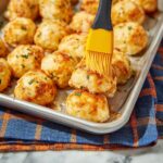 Cheddar Bay Chicken Meatballs are a delicious twist on the classic Red Lobster cheddar bay biscuits, combining savory ground chicken with creamy cheddar cheese and garlic butter for a flavorful, easy-to-make appetizer or main dish. These bite-sized meatballs are baked to golden perfection and brushed with melted garlic butter, perfect for a quick meal or party snack.