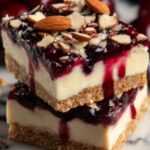 These Cherry Almond Cheesecake Bars combine a buttery graham cracker crust with a smooth, creamy almond-infused cheesecake layer, topped with fresh cherries and optional crunchy sliced almonds. Finished with a sweet powdered sugar glaze, these bars offer a perfect balance of tart and sweet flavors in a convenient, cuttable form that’s ideal for gatherings or dessert cravings.