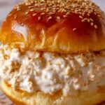 Now for the fun part. Spoon a generous amount of the creamy chicken Alfredo mixture onto the bottom half of each toasted bun. Then, top with the other half, giving it a gentle press to hold everything together. The result is a deliciously messy yet utterly satisfying sandwich experience.