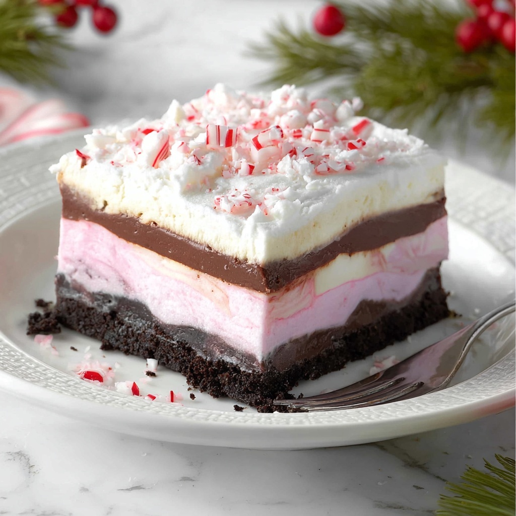 Finish your masterpiece by spreading the remaining 1½ cups of whipped topping over the pudding. Then sprinkle the crushed peppermint candies and, if you like, mini chocolate chips or chocolate shavings on top for that perfect festive crunch and an extra chocolate hit. Chill the entire lasagna for at least 4 hours—overnight is even better—so all the layers meld together beautifully for each heavenly slice.