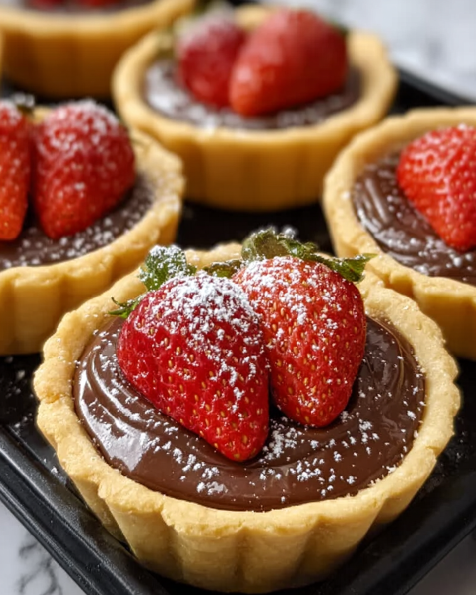 Gathering simple, quality ingredients is the first step toward creating these stunning tarts. Each one plays a key role in building layers of flavor and texture—from the flaky crust to the silky chocolate filling, to the vibrant strawberry topping.