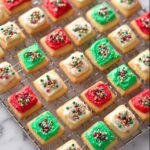 Christmas Sugar Cookie Bites are soft, buttery, and festive treats perfect for holiday celebrations. These bite-sized cookies are made with a simple dough enriched with cold butter, powdered sugar, and a hint of vanilla and almond extracts. After rolling and chilling, they are cut into small squares, baked to golden perfection, and decorated with colorful buttercream frosting and holiday sprinkles for a delightful seasonal treat.
