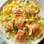 This Citrus-Scented Pappardelle with Slow-Roasted Salmon is a delightful and elegant Italian-inspired main course that combines tender, moist salmon roasted to perfection with fragrant lemon and orange zest, tossed together with wide ribbon-like pappardelle pasta. The dish features a light, buttery garlic sauce enhanced with fresh herbs and Parmesan cheese, delivering a fresh, flavorful, and satisfying meal perfect for any occasion.