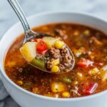This hearty and flavorful Cowboy Soup features a robust blend of ground beef, beans, corn, and spices simmered together to create a comforting and satisfying meal perfect for chilly evenings or family dinners.
