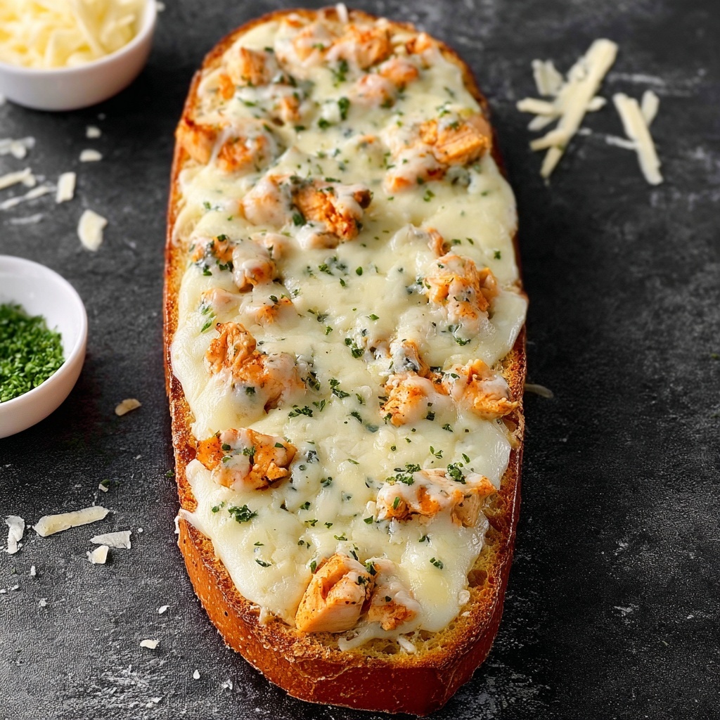 Creamy Chicken Alfredo Garlic Bread