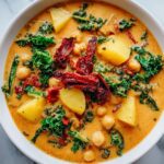 This Creamy Tuscan Chickpea Soup is a hearty, comforting dish bursting with Mediterranean flavors. Featuring tender chickpeas, earthy kale, and creamy coconut cream, it’s a nourishing and satisfying vegan soup perfect for any season.