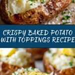 This Crispy Baked Potatoes recipe guides you through preparing a perfectly tender and crispy skin russet potato, enhanced with olive oil and kosher salt, then topped with classic accompaniments like butter, sour cream, scallions, cheese, and bacon crumbles for a delicious, customizable baked potato experience.