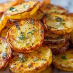 Fresh parsley is a classic choice to brighten these crispy potatoes with its vibrant color and subtle herbaceous note. For an extra touch, try adding a sprinkle of lemon zest or a pinch of chili flakes to add complexity and a delightful zing that contrasts beautifully with the savory cheese crust.