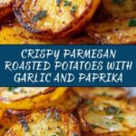 Crispy Crunchy Parmesan Potatoes are a flavorful side dish featuring halved baby potatoes coated in a garlic and paprika seasoning, then baked atop a layer of melted Parmesan cheese for an irresistible golden crust. These oven-baked potatoes deliver a crispy, cheesy bottom and tender interior, making them a perfect accompaniment to any meal.