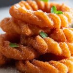 Delight in these crispy funnel cake sticks—golden, airy, and perfectly sweetened with a dusting of powdered sugar. A fun and easy twist on traditional funnel cakes, these sticks are fried to a light crunch and make a perfect treat for dessert or snack time.