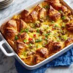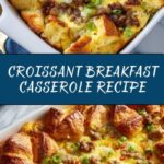 This Croissant Breakfast Casserole is a comforting and savory brunch dish featuring day-old croissants soaked in a rich custard of eggs, milk, and cream, layered with melted cheddar and mozzarella cheeses, and flavorful cooked breakfast sausage or bacon. Perfect for make-ahead breakfasts or holiday gatherings, this baked casserole delivers a golden, cheesy top with a soft, custardy interior that’s simple to prepare and delightfully satisfying.
