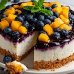 This Delightful No-Bake Peach Blueberry Cheesecake is a refreshing, creamy dessert perfect for warm weather or any occasion. Featuring a buttery graham cracker crust, a smooth cream cheese filling whipped with heavy cream and Greek yogurt, and topped with luscious fresh peaches and blueberries, this cheesecake is easy to assemble without an oven. The no-bake method keeps it light and cool, making it a crowd-pleaser that’s both indulgent and fruit-forward.