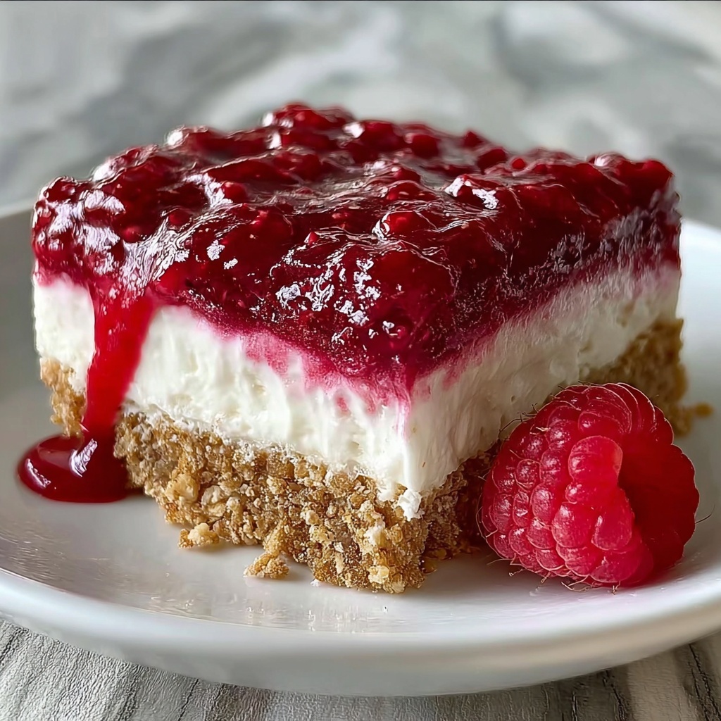 Wrap any leftover cheesecake tightly with plastic wrap or store in an airtight container to keep it fresh for up to 5 days in the refrigerator. This preserves the creamy texture and keeps the raspberries vibrant without drying out the crust.