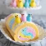 Easter Cake Roll with Colorful Buttercream and Peeps Recipe