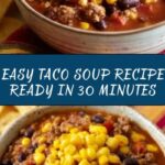 This Easy Taco Soup is a flavorful and hearty dish perfect for quick weeknight dinners. Combining seasoned ground beef with corn, kidney beans, tomatoes, and taco seasoning, this comforting soup simmers to perfection in about 30 minutes, yielding a satisfying meal for the entire family.