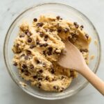 Finally, gently fold in the mini chocolate chips, making sure they’re evenly distributed. These chocolatey nuggets add delightful bursts of flavor and contrasting texture, transforming the dough from great to unforgettable.