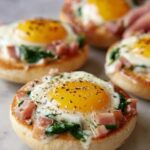 These English Muffin Breakfast Pizzas are a quick and delicious way to start your day. Featuring toasted English muffins topped with eggs, melted cheese, and your choice of savory breakfast meats and fresh vegetables, they’re perfect for a hearty and customizable breakfast or brunch.