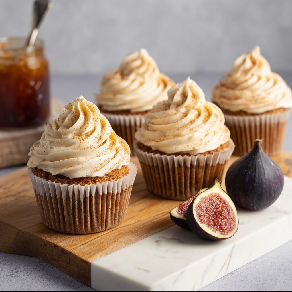 Adding a fresh fig slice atop each cupcake isn’t just beautiful; it highlights the star ingredient and adds a subtle, juicy bite that pairs perfectly with the sweet frosting. A sprinkle of cinnamon dusted lightly on top evokes warm, comforting vibes and enhances the cupcake’s rustic charm.