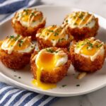To reheat, warm the breaded egg whites briefly in a preheated oven at 350°F (175°C) for 5–7 minutes until crisp again. Refill with the yolk mixture just before serving to maintain that rich, creamy center. Avoid microwaving, as it can make the coating chewy.