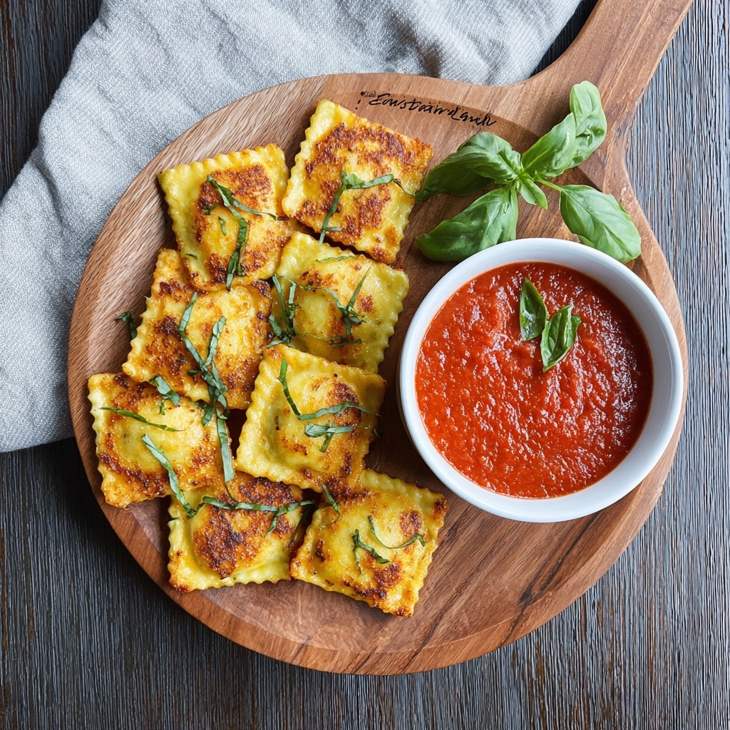 Crispy fried ravioli served with a homemade marinara sauce, perfect as a delicious appetizer or snack. This easy recipe uses cheese ravioli coated in Italian-style breadcrumbs and fried until golden brown, delivering a satisfying crunch paired with the rich flavors of marinara.