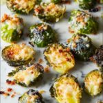 Once your Brussels sprouts are roasted, turn the broiler on high and sprinkle the half-cup of finely grated Parmesan cheese evenly over the sprouts. Broil for an additional 2 to 3 minutes, keeping a close watch as the cheese melts and forms a golden, crispy crust that adds a rich, savory layer to your dish.