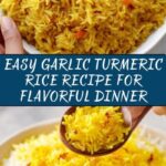 A fragrant and vibrant Garlic Turmeric Rice recipe that features basmati rice cooked with sautéed onions, garlic, and turmeric, infused with rich chicken or vegetable stock, creating a flavorful and colorful side dish perfect for any meal.