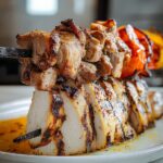 Start by whisking together olive oil, Greek yogurt, lemon juice, garlic, red wine vinegar, oregano, cumin, paprika, salt, and pepper in a medium bowl. This marinade is the heart of our Greek Chicken Gyros Recipe, infusing the chicken with a harmonious blend of tangy, herby, and smoky flavors. Once combined, toss your chicken thighs or breasts in the marinade, ensuring each piece is well-coated. Cover and let the chicken marinade in the fridge for at least one hour—overnight is even better for a more intense flavor and tender texture.