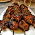 These Grilled Thai Chicken Skewers are a flavorful and easy-to-make dish perfect for any occasion. Marinated in a delicious blend of soy sauce, lime, garlic, and chili paste, then grilled to perfection and served with a creamy, tangy peanut sauce. This recipe offers a perfect balance of sweet, spicy, and savory flavors with fresh cilantro garnish for a bright finish.