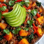 Remove the skillet from heat. For an extra touch of indulgence and freshness, garnish with creamy avocado slices and a sprinkle of chopped cilantro if you like. Serve hot and savor the incredible mix of flavors and textures that only a Ground Beef Sweet Potato Skillet Recipe can deliver.