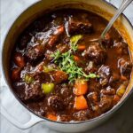 This hearty Guinness Beef Stew is a classic Irish-inspired dish featuring tender chunks of beef slow-cooked in rich Guinness beer with aromatic vegetables, bacon, and herbs. Perfect for a comforting meal, the stew boasts a thick, flavorful sauce that pairs deliciously with creamy mashed potatoes.