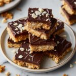 This Healthy Cookie Dough Bark is a delicious and gluten-free treat that combines almond flour, pure maple syrup, and coconut oil with dark chocolate chips and chopped nuts. It’s a no-bake recipe that sets in the fridge, perfect for a quick and nutritious snack or dessert that satisfies sweet cravings without refined sugars or gluten.