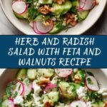 A fresh and vibrant Herb and Radish Salad featuring crisp radishes, fragrant parsley, mint, and dill, complemented by crunchy toasted walnuts and creamy feta cheese. Tossed in a light honey-lemon vinaigrette, this salad is quick to prepare and perfect as a refreshing appetizer or side dish.