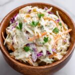 This Homemade Coleslaw is a crisp, creamy, and tangy side dish featuring fresh shredded green and red cabbage with carrots, dressed in a simple mayonnaise-based dressing with apple cider vinegar, lemon juice, and a hint of sweetness. It’s perfect for BBQs, burgers, sandwiches, or fried chicken, easy to prepare in minutes, and can be made ahead to let flavors meld.