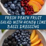 A refreshing and vibrant Honey Lime Basil Peach Fruit Salad featuring ripe peaches, fresh berries, and grapes tossed in a sweet and tangy honey-lime dressing with aromatic basil. Perfect as a healthy summer side or snack.