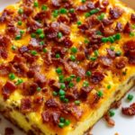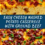 A hearty and comforting Mashed Potato Casserole featuring creamy mashed potatoes layered with seasoned ground beef, topped with melted cheddar cheese and crispy bacon. Perfect for family dinners, this casserole combines classic flavors and textures in a simple baked dish.
