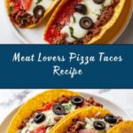 Meat Lovers Pizza Tacos are a delicious fusion dish combining the hearty flavors of classic meat pizza toppings with the convenience and fun of tacos. Ground beef, pepperoni, bacon, sausage, and a blend of veggies are sautéed with Italian seasonings, then wrapped in warm tortillas smeared with pizza sauce, topped with mozzarella and olives, and baked to bubbly perfection. Perfect for a quick weeknight dinner or a crowd-pleasing appetizer.