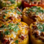 Reheat your stuffed peppers in a preheated oven at 350°F (175°C) for 15 to 20 minutes until warmed through and cheese is melty again. Avoid microwaving if possible, as the texture of the peppers can become soggy, but it’s okay in a pinch.