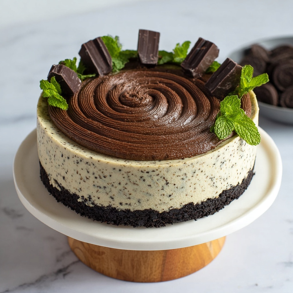 This cheesecake pairs wonderfully with fresh berries like raspberries or strawberries, which add pleasant tartness. A cup of herbal mint tea or a chilled glass of vegan white wine also complements the dessert nicely without overpowering the mint-chocolate harmony.