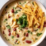 - Serve: Ladle the creamy white chicken chili into bowls and garnish with shredded Monterey Jack cheese and tortilla chips for added texture. Optionally, add jalapenos or Pepper Jack cheese for some extra spice and flavor.